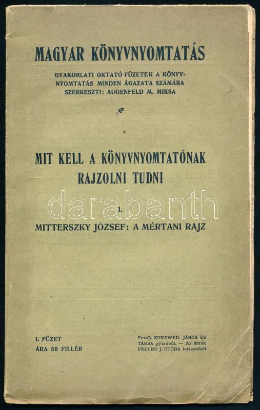 Mit kell a könyvnyomtatónak rajzolni tudni. I. Mitterszky József: A mértani rajz. Magyar könyvnyomtatás gyakorlati oktató füzetek a könyvnyomtatás minden ágazata számára. I. füzet. Szerk.: Augenfeld M. Miksa. Bp., [1906], Jókai-ny., 48 p. Kiadói papíkrötés,