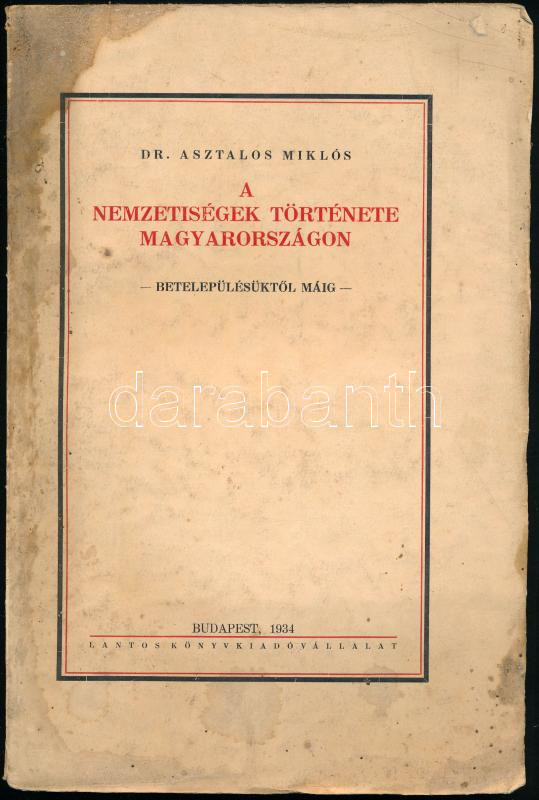 Asztalos Miklós: A nemzetiségek története Magyarországon. Betelepülésü... https://www.darabanth.com/de/451-Fernauktion/451.0/Bucher/Bucher-Geschichte~1000011/Asztalos-Miklos-A-nemzetisegek-tortenete-Magyarorszagon-Betelepulesuktol-maig-Bp-1934~II2997936