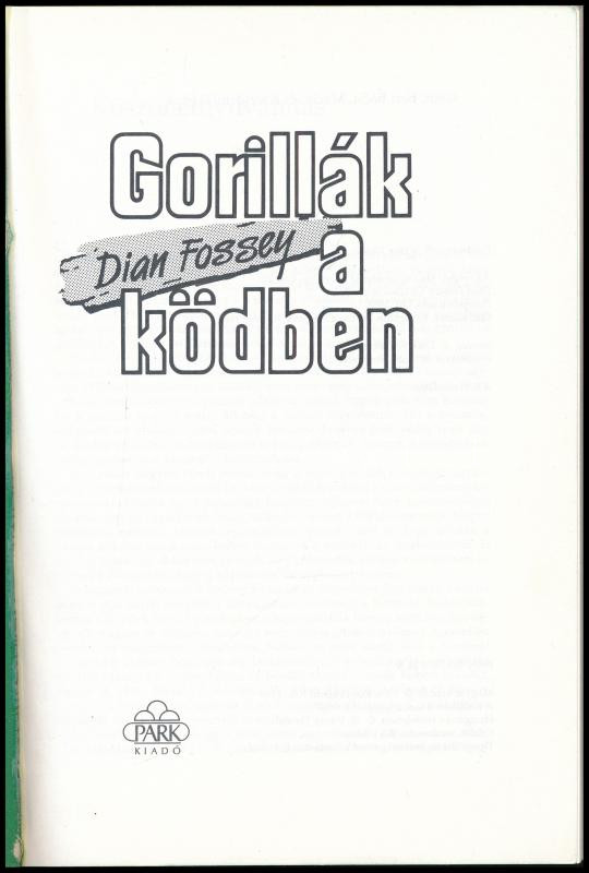 Dian Fossey: Gorillák a ködben. Ford.: ifj. Vitray Tamás. Bp., 1990, Park. Kiadói papírkötés.