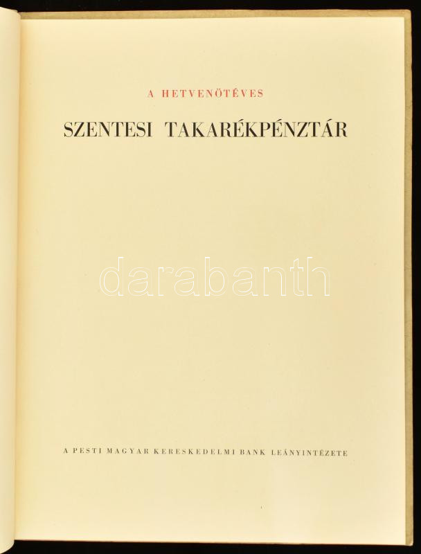 Lestyán Sándor: A hetvenötéves Szentesi Takarékpénztár. A szöveget írta és a képanyagot összeállította: - -.Szentes, (1944), Pesti Magyar Kereskedelmi Bank Leányintézete, (Bp., Posner Grafikai Műintézete Rt.-ny.) Fekete-fehér fotókkal illusztrált. Kiadói papírkötés.