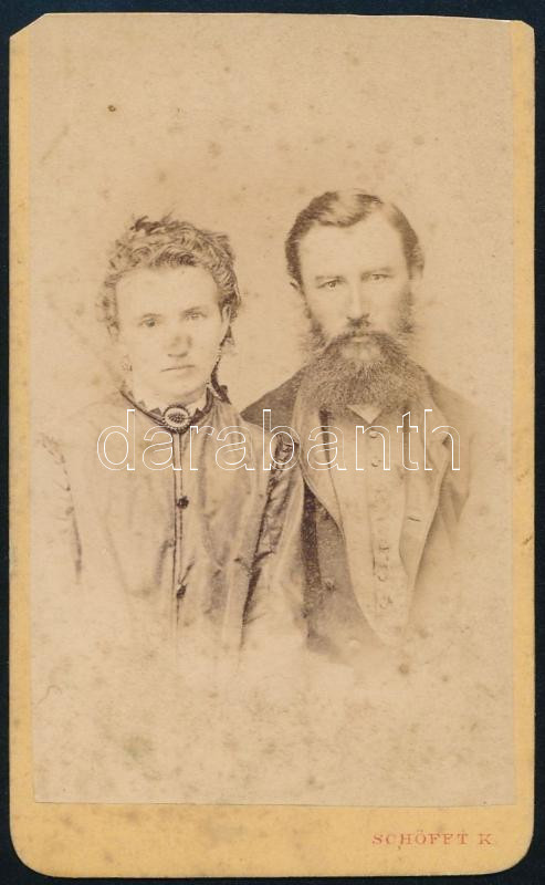 Beschreibung: cca 1873 Házaspár portréja, keményhátú fotó Schöfft pesti műterméből, foltos, 10,5×6 cm