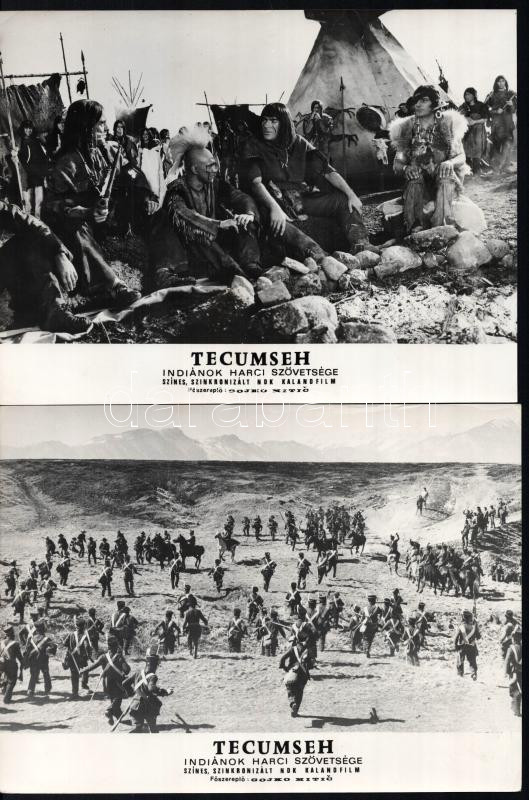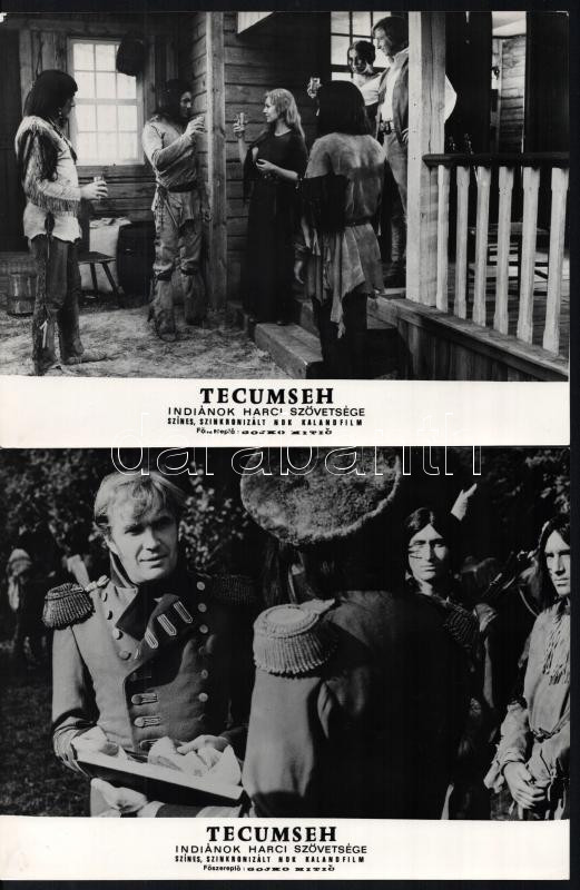 cca 1972 ,,Tecumseh - indiánok harci szövetsége" című NDK westernfilm jelenetei és szereplői, 13 db vintage produkciós filmfotó ezüst zselatinos fotópapíron, a használatból eredő (esetleges) kisebb hibákkal, 18x24 cm