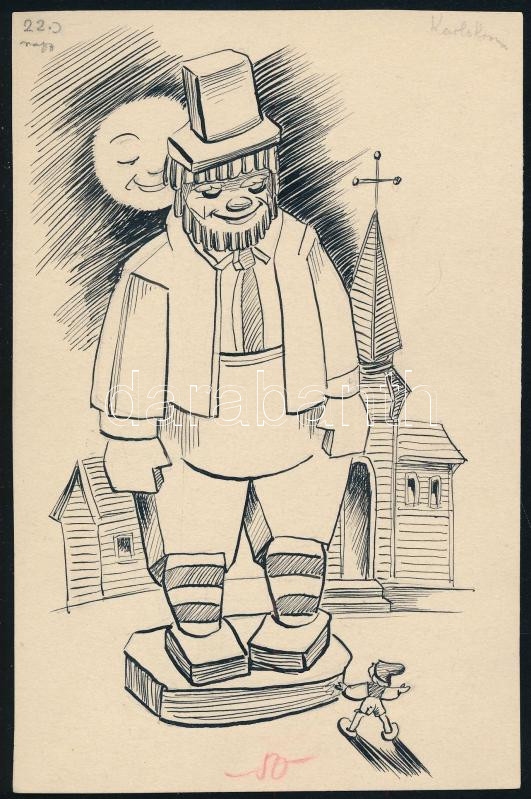 Beschreibung: Róna Emy (1904-1988): Nils Holgersson illusztráció (óriás). Tus, papír, hátoldalán hagyatéki pecséttel jelzett és egy másik ceruzarajzzal, 17x11 cm