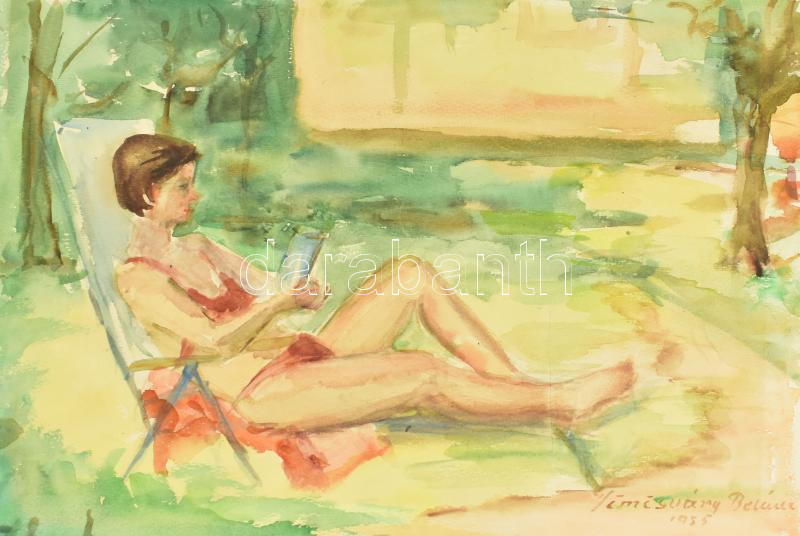Tömösváry Béláné Fürdőruhában olvasó nő. Akvarell, papír. Jelzett 34x5... https://www.darabanth.com/de/451-Fernauktion/451.0/Gemalde-und-Grafiken/Gemalde-und-Grafiken~500007/Tomosvary-Belane-Furdoruhaban-olvaso-no-Akvarell-papir-Jelzett-34x50-cm~II3000796
