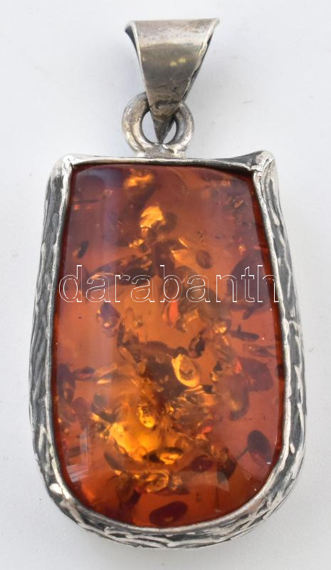 Beschreibung: Ezüst (Ag) medál, borostyánt befoglalva, jelzéssel, 20x15 mm