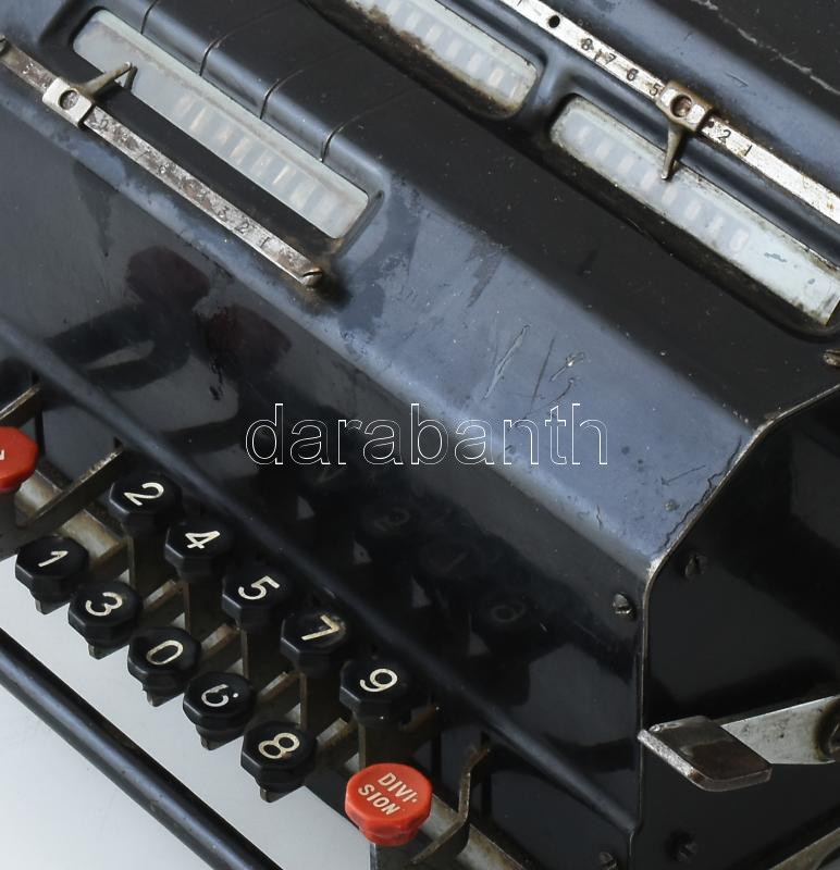 Antik mechanikus számológép, kopással, jelzéssel, 30x19x14 cm https://www.darabanth.com/de/451-Fernauktion/451.0/Kunst-Dokumente-andere-Sammelgebiete/Antik~500009/Antik-mechanikus-szamologep-kopassal-jelzessel-30x19x14-cm~II3003785