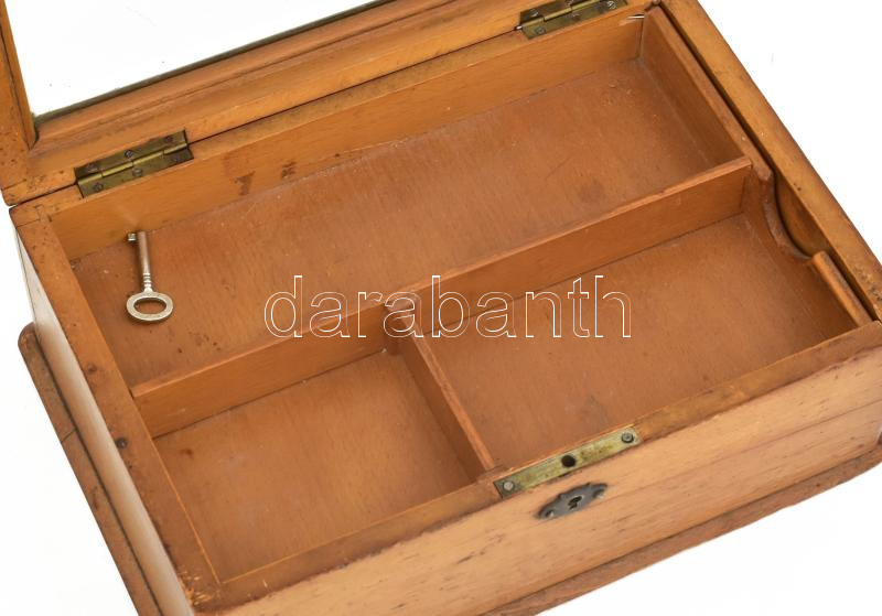 Antik üvegezett doboz, kulccsal, fiókkal, kopással, 27x18x11 cm https://www.darabanth.com/de/451-Fernauktion/451.0/Kunst-Dokumente-andere-Sammelgebiete/Antik~500009/Antik-uvegezett-doboz-kulccsal-fiokkal-kopassal-27x18x11-cm~II3003776