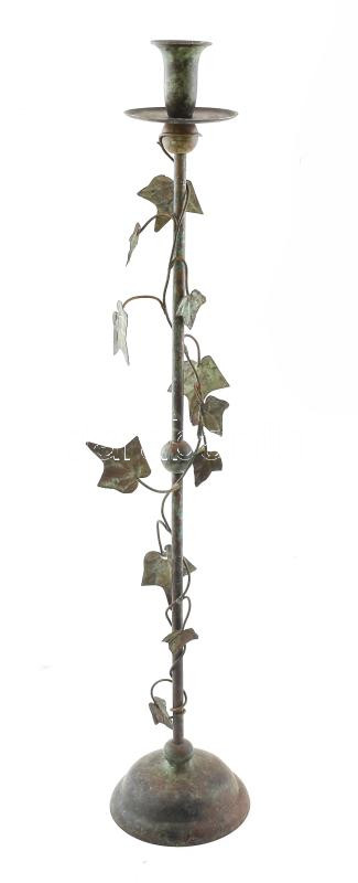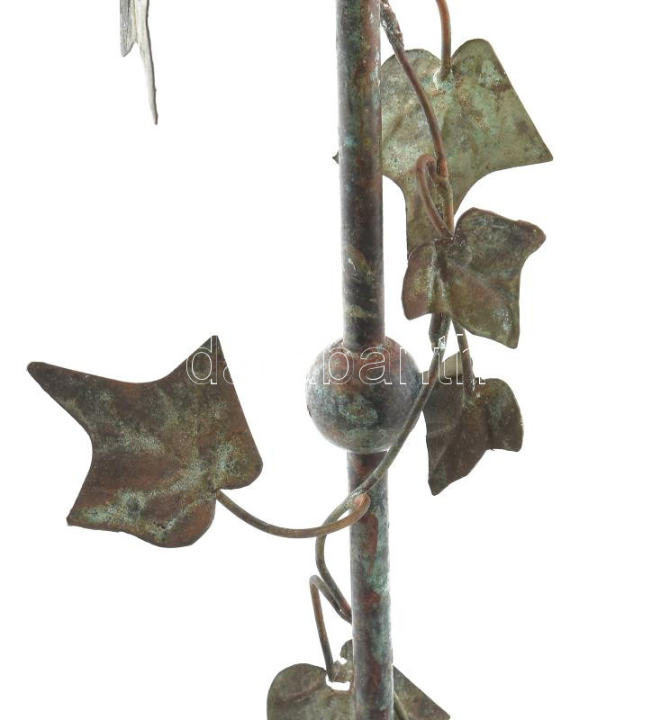 Beschreibung: Magas fém gyertyatartó, borostyánlevél díszítéssel, antikolt, kopással, m: 61 cm