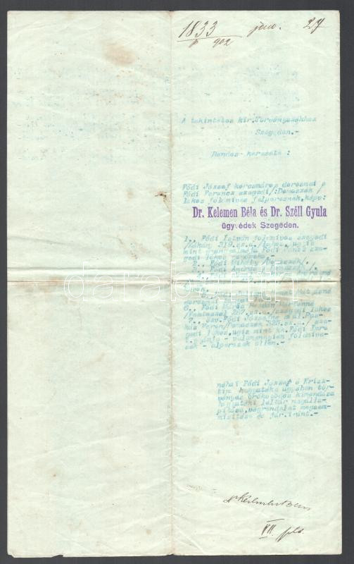 1902 Szeged, hagyatéki per beadványa https://www.darabanth.com/de/451-Fernauktion/451.0/Kunst-Dokumente-andere-Sammelgebiete/Dokument~500022/1902-Szeged-hagyateki-per-beadvanya~II2984483