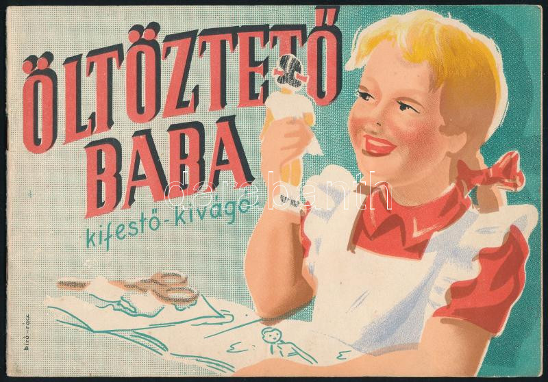 1953 Öltöztető baba. Kivágó és kifestőkönyv. Tervezte és rajzolta: Biró Magda és Rácz Vera. Bp., Kereskedelmi Szakkönyv- és Lapkiadó. Tűzött papírkötés, részben kivágott és kiszínezett, helyenként kissé foltos.