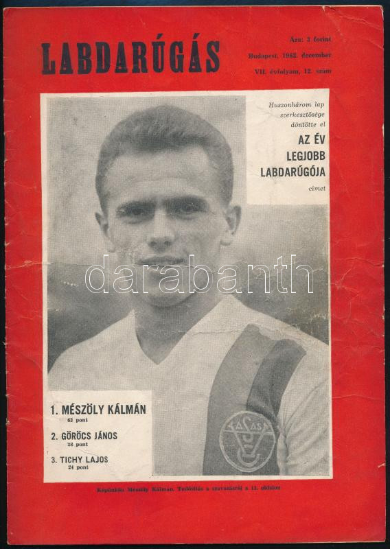 1962 Labdarúgás c. folyóirat VIII. évf. 12. száma, 1962. december, fek... https://www.darabanth.com/de/451-Fernauktion/451.0/Kunst-Dokumente-andere-Sammelgebiete/Drucksachen~1000005/1962-Labdarugas-c-folyoirat-VIII-evf-12-szama-1962-december-fekete-feher-fotokkal-a-c~II3000474