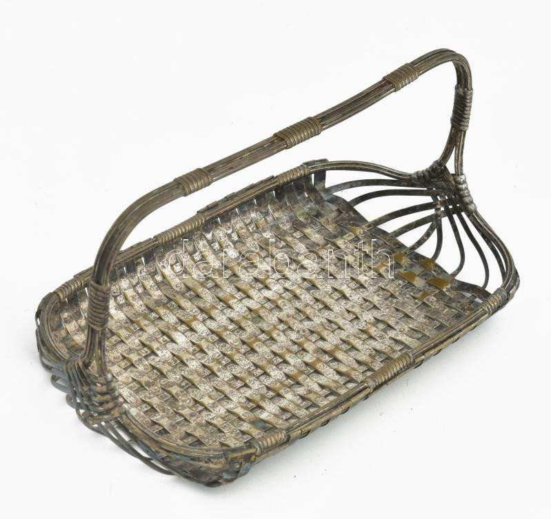 Antik ezüstözött réz kosár kínáló, kopással, 22x12x10 cm https://www.darabanth.com/de/451-Fernauktion/451.0/Kunst-Dokumente-andere-Sammelgebiete/Flohmarkt~500016/Antik-ezustozott-rez-kosar-kinalo-kopassal-22x12x10-cm~II3002334