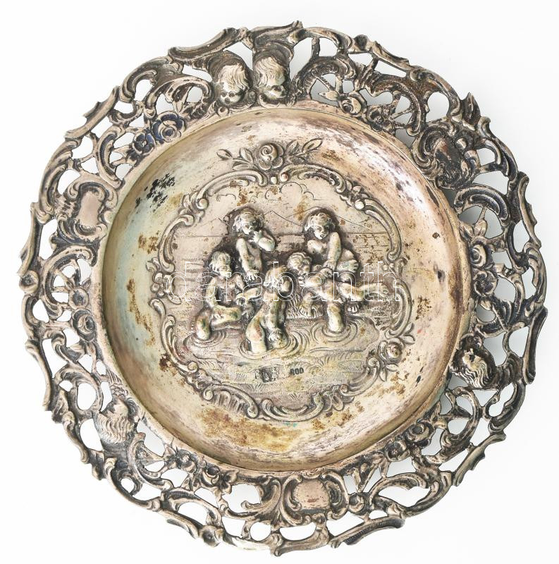 Beschreibung: Figurális jelenettel díszített alpakka dísztál, kopásnyomokkal, d: 13,5 cm