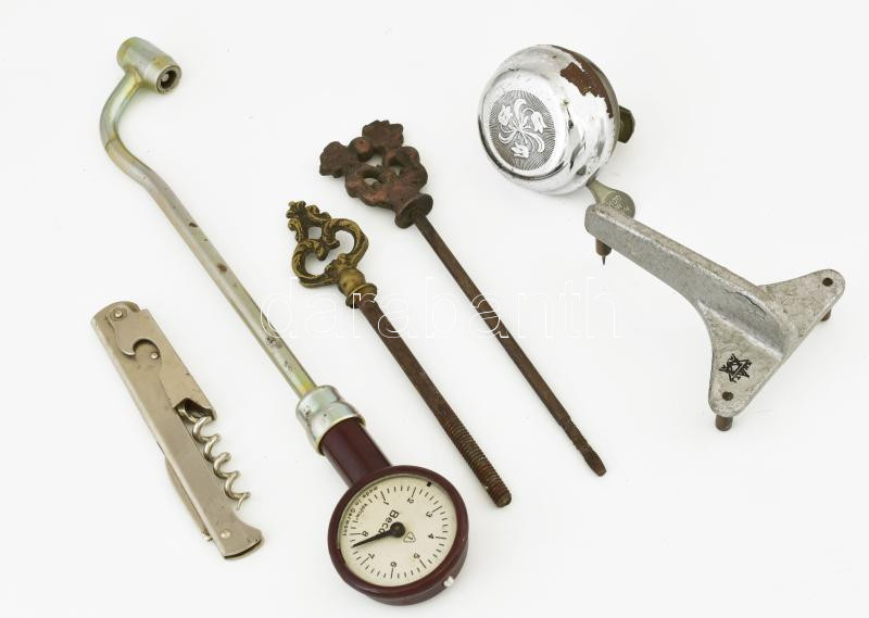 Vegyes bolha tétel: Nyomásmérő, biciklicsengő, tükörcsavarok, stb. https://www.darabanth.com/de/451-Fernauktion/451.0/Kunst-Dokumente-andere-Sammelgebiete/Flohmarkt~500016/Vegyes-bolha-tetel-Nyomasmero-biciklicsengo-tukorcsavarok-stb~II2976816