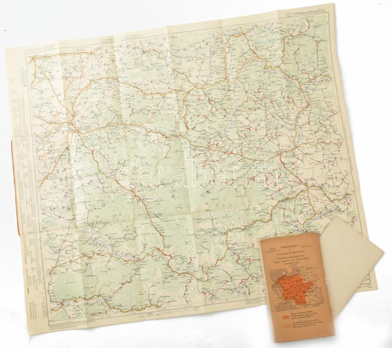 cca 1930 3 db német kiadású autótérkép, Kassa-Debrecen, Erdély-Partium (Nagyvárad, Kolozsvár stb.), Budapest-Arad. Freytag&Berndt kiadása, 1:300.000, 61x72 cm körüli méretben. Kassa-Debrecen szakadt és borító nélkül.