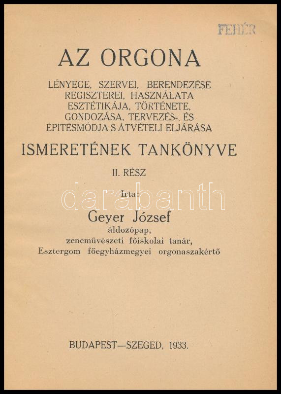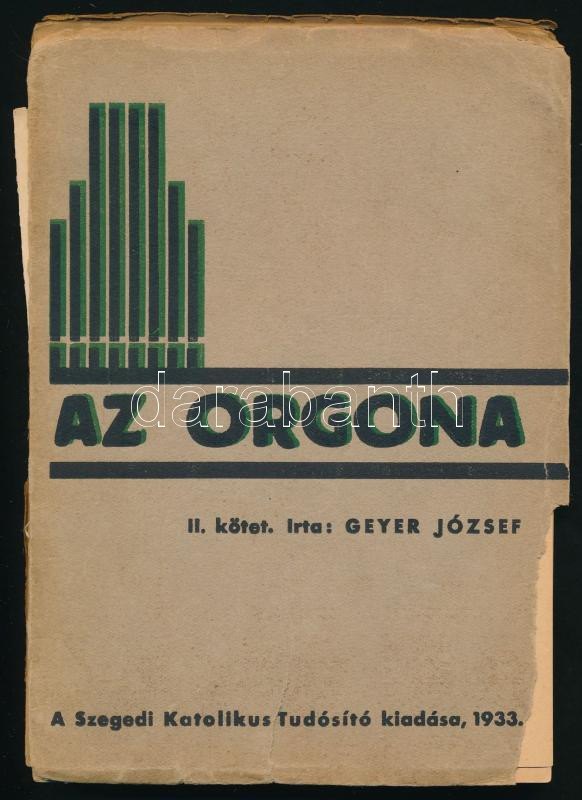 Geyer József: Az orgona. II-III. köt. Bp.-Szeged, 1933/1948, Szegedi Katolikus Tudósító / Rózsavölgyi és Társa. Kiadói papírkötés, a II. kötet sérült, széteső állapotban.