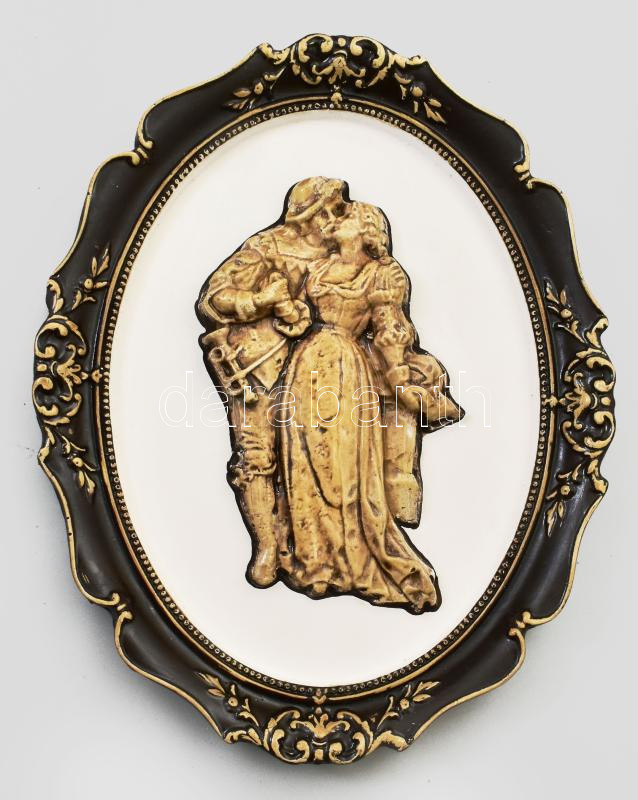 Szászfalvi László: Románc. Fali gipsz dombormű, jelzés nélkül, eredeti kartondobozán címkén feliratozott, 27x21x2,5 cm