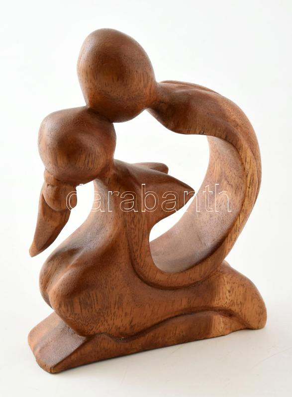 Szerelmes pár. Faragott, pácolt fa szobor 16 cm