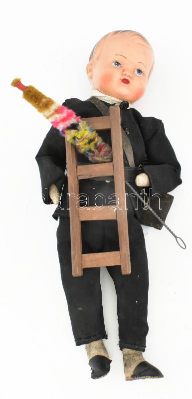 Beschreibung: Antik kéményseprő baba, papírmasé fejjel, kiegészítőkkel, 32 cm m:
