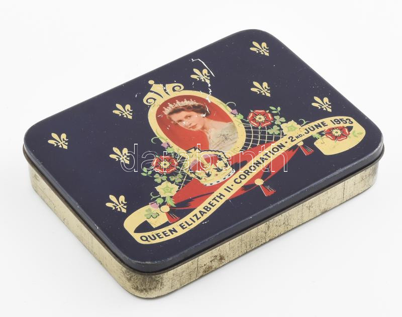 1953 II. Queen Elisabeth / Erzsébet koronázása fém doboz 17x13 cm Kopo... https://www.darabanth.com/de/451-Fernauktion/451.0/Kunst-Dokumente-andere-Sammelgebiete/Werbungen~500026/1953-II-Queen-Elisabeth-Erzsebet-koronazasa-fem-doboz-17x13-cm-Kopott~II2910982