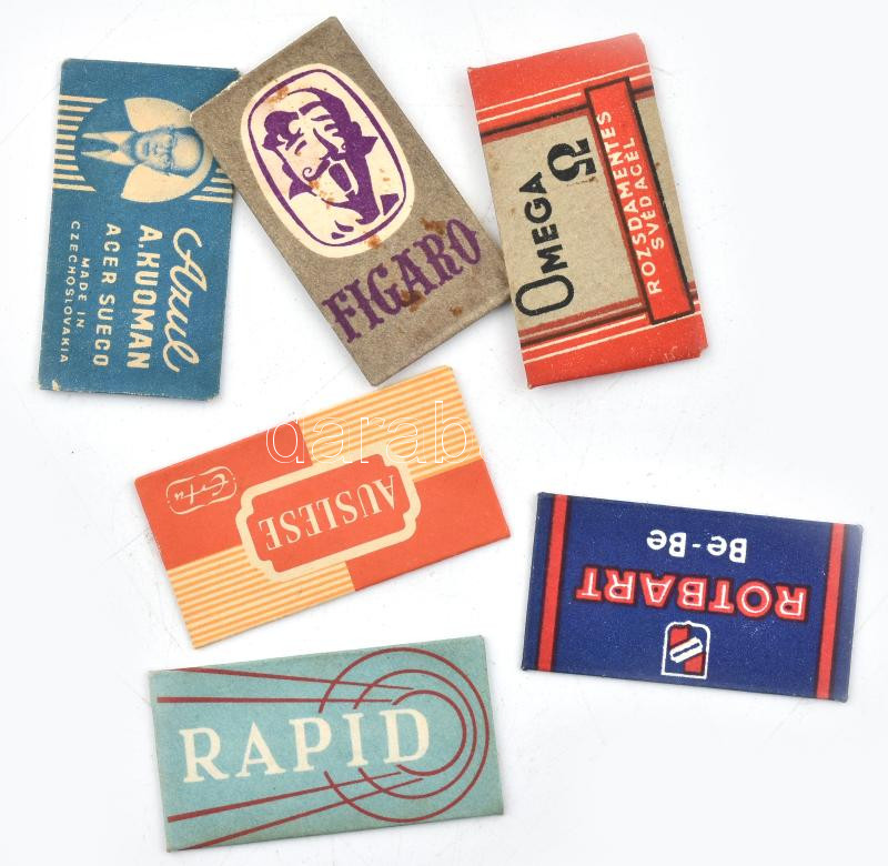 6 db különböző borotvapenge https://www.darabanth.com/de/451-Fernauktion/451.0/Kunst-Dokumente-andere-Sammelgebiete/Werbungen~500026/6-db-kulonbozo-borotvapenge~II2764613