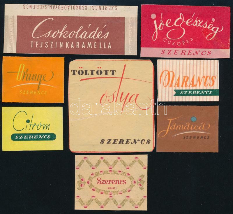Beschreibung: A Szerencsi Csokoládégyár címkéi, 2 nagy és 8 kisebb méretben