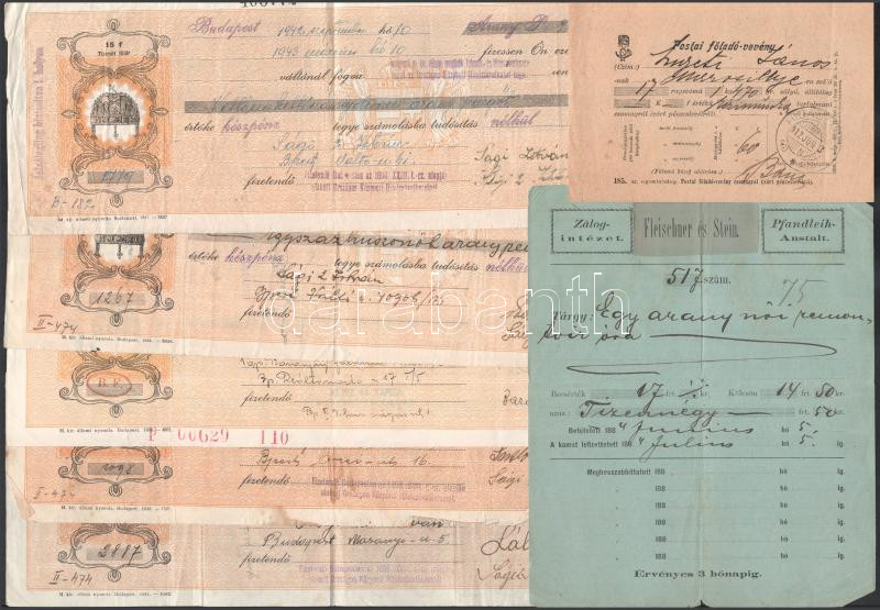 Beschreibung: Vegyes pénzügyi okmány tétel: váltók, feladóvevény, zálogcédula