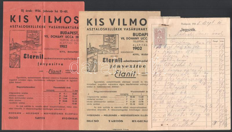 cca 1935-1936 Kis Vilmos asztaloskellékek vasáruraktára (Bp., VII., Do... https://www.darabanth.com/de/451-Fernauktion/451.0/Kunst-Dokumente-andere-Sammelgebiete/Werbungen~500026/cca-1935-1936-Kis-Vilmos-asztaloskellekek-vasaruraktara-Bp-VII-Dohany-u-28-2-db-reklam~II2999594
