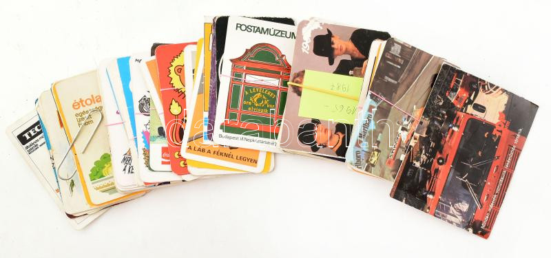 cca 1960-1990 Kb 100 db reklámos kártyanaptár különféle témákkal, https://www.darabanth.com/de/451-Fernauktion/451.0/Kunst-Dokumente-andere-Sammelgebiete/Werbungen~500026/cca-1960-1990-Kb-100-db-reklamos-kartyanaptar-kulonfele-temakkal-~II2996867