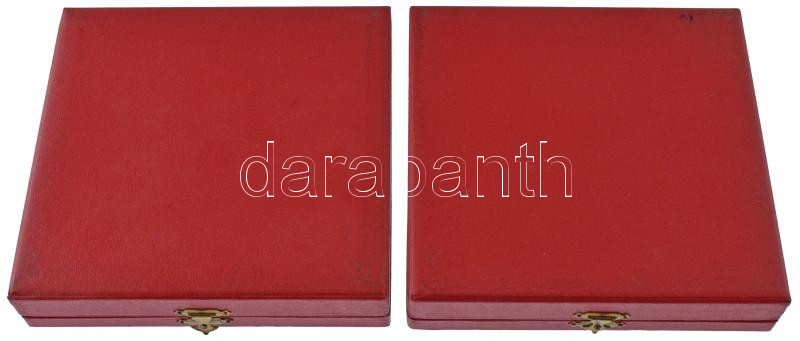 Beschreibung: 1982. "Magyar Néphadsereg Dalostalálkozója Tata '82" kétoldalas, öntött bronz plakett, eredeti dísztokban (96mm) + 1982. "Magyar Néphadsereg Folklórfesztiválja Vác '82" egyoldalas, öntött bronz plakett, eredeti dísztokban (~101-103mm) T:1-