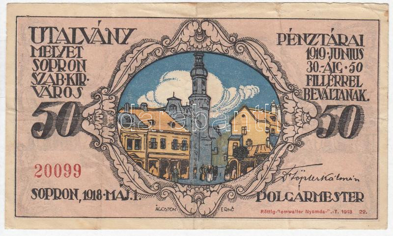 Sopron 1919. 50f városi szükségpénz T:III https://www.darabanth.com/de/451-Fernauktion/451.0/Numismatik/Notgeld-aus-Papier-und-Metall~1500006/Sopron-1919-50f-varosi-szuksegpenz-TIII~II1200788