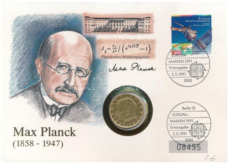 NSZK 1957J 2M aranyozott Cu-Ni "Max Planck" felbélyegzett bo... https://www.darabanth.com/de/451-Fernauktion/451.0/Numismatik/Umschlage-mit-Munzen-und-Banknoten~1500004/NSZK-1957J-2M-aranyozott-Cu-Ni-Max-Planck-felbelyegzett-boritekon-alkalmi-belyegzessel-TAU-~II2958720