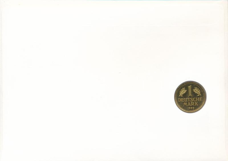 NSZK 1989J 1M aranyozott Cu-Ni "Gustav Heinemann" érmés borítékban bélyeggel, bélyegzéssel, német nyelvű leírással T:UNC kis patina FRG 1989J 1 Mark gilded Cu-Ni "Gustav Heinemann" in coin envelope with stamps, cancellations and a description in german C:UNC small patina