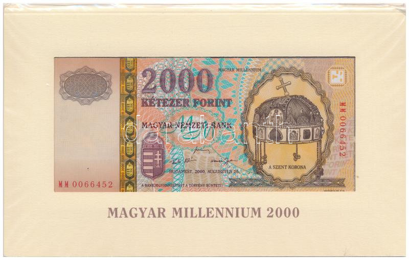 2000. 2000Ft "Millenium" "MM 0066452" eredeti, bon... https://www.darabanth.com/de/451-Fernauktion/451.0/Numismatik/Ungarische-Banknoten~1500007/2000-2000Ft-Millenium-MM-0066452-eredeti-bontatlan-diszcsomagolasban-TUNC-Adamo-F56A~II2997315