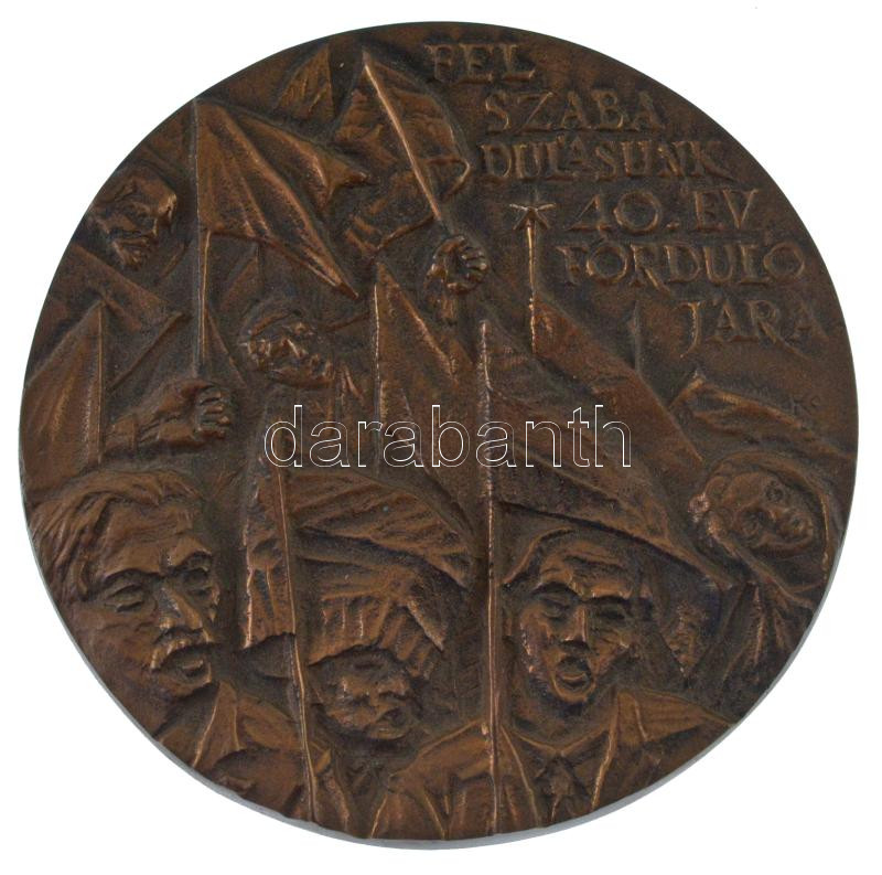 1985. "Felszabadulásunk 40. évfordulójára" egyoldalas bronz ... https://www.darabanth.com/de/451-Fernauktion/451.0/Numismatik/Ungarische-Gedenkmunzen-Plaketten~1500010/1985-Felszabadulasunk-40-evfordulojara-egyoldalas-bronz-emlekerem-eredeti-tokban-Szign~II2935748