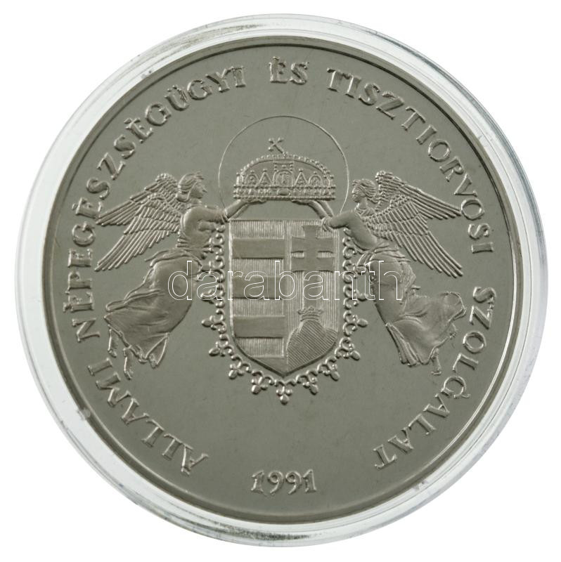 Győrfi Sándor (1951-) 1994. "Állami Népegészségügyi és Tisztiorvosi Szolgálat / Jász-Nagykun-Szolnok Megyei Intézete - ÁNTSZ" peremén jelzett Ag emlékérem, MÉE Szolnok (34,1g/0.925/60mm) T:PP