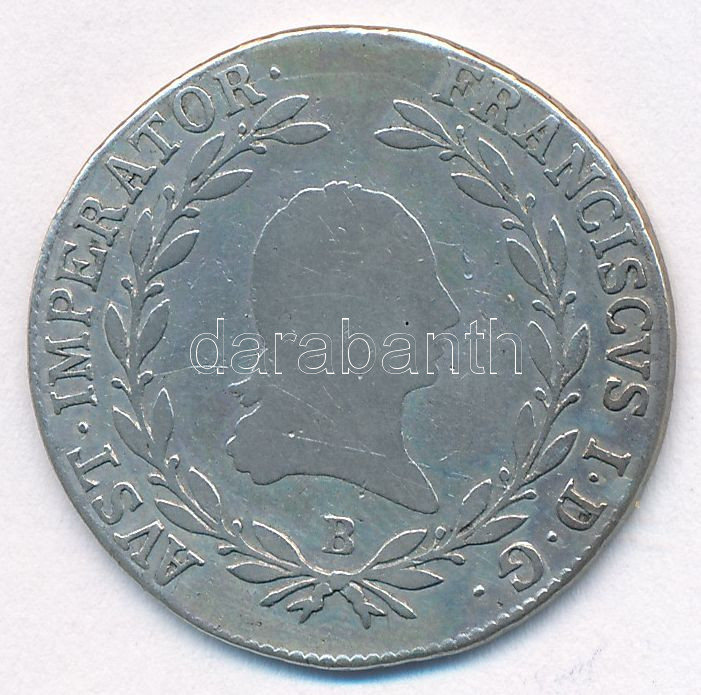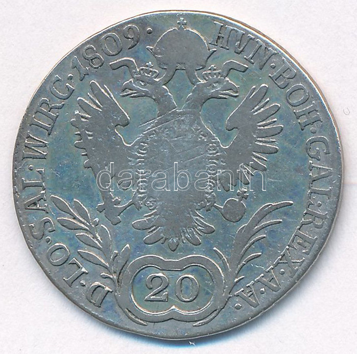 1809B 20kr Ag "I. Ferenc" T:F patina Hungary 1809B 20 Kreuze... https://www.darabanth.com/de/451-Fernauktion/451.0/Numismatik/Ungarische-Munzen-und-Munzen-mit-ungarischem-Munzzeichen~1500008/1809B-20kr-Ag-I-Ferenc-TF-patina-Hungary-1809B-20-Kreuzer-Ag-Franz-I-CF-patina-Unger-III-13~II2996804