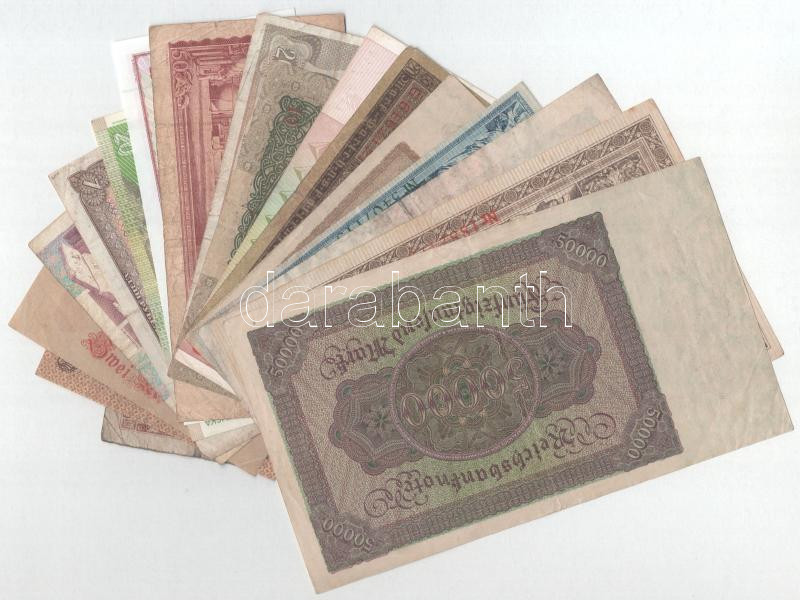 18db vegyes külföldi bankjegy, közte Zimbabwe, Ausztria, Jugoszlávia, Csehszlovákia, Szlovákia, Olaszország, Szovjetunió és több Németország / Weimari Köztársaság bankjeggyel T:UNC-VG 18pcs of mixed banknotes from different countries, such as Zimbabwe, Austria, Yugoslavia, Czechoslovakia, Slovakia, Italy, Soviet Union and several banknotes from the German Weimar Republic era C:UNC-VG