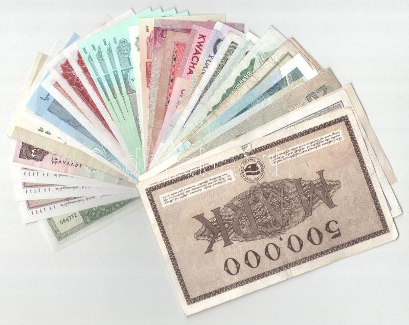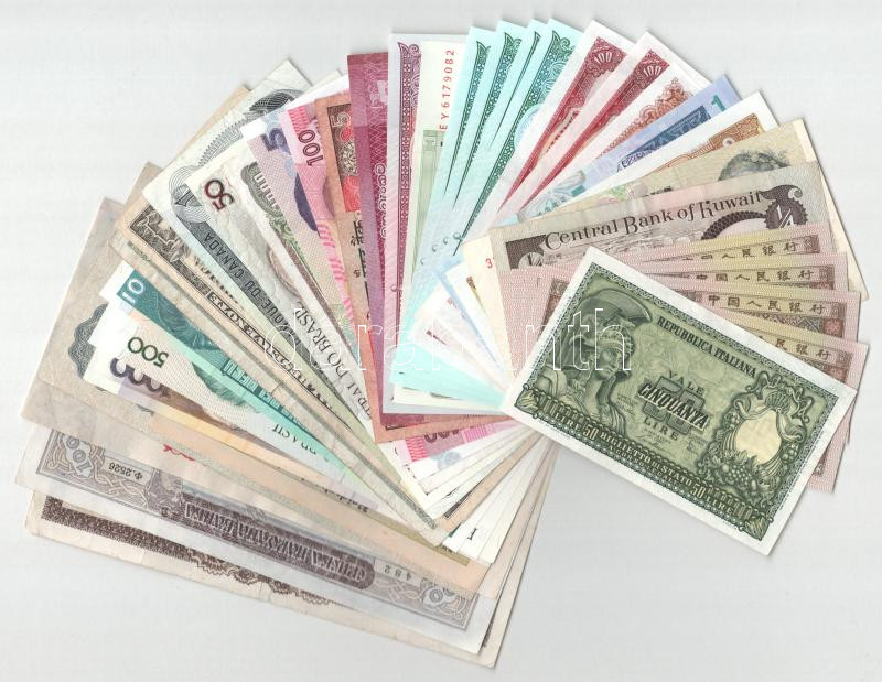 38db-os vegyes külföldi bankjegy tétel, közte Dánia, Kanada, Kína, Kuvait, Malajzia, Peru stb. T:UNC-VG 38pcs of mixed foreign banknote lot from countries like Denmark, Canada, China, Kuwait, Malaysia, Peru etc. C:UNC-VG