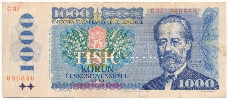 Csehszlovákia 1985. 1000K T:F Czechoslovakia 1985. 1000 Korun C:F Krau... https://www.darabanth.com/de/451-Fernauktion/451.0/Numismatik/Weltweit-Banknoten~1500014/Csehszlovakia-1985-1000K-TF-Czechoslovakia-1985-1000-Korun-CF-Krause-P2398~II2997346