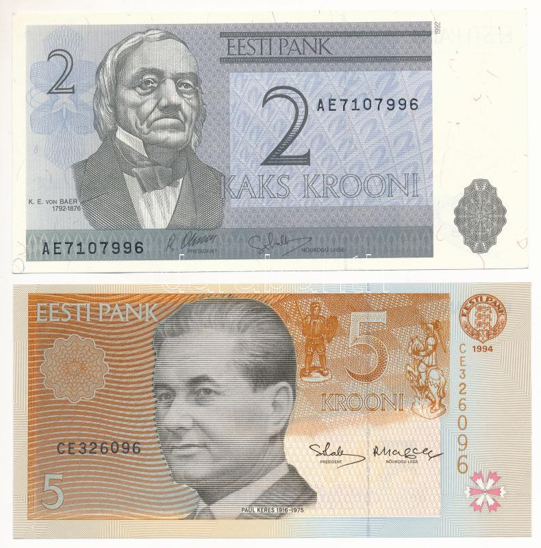 Észtország 1992. 2K + 1994. 5K T:UNC,AU Estonia 1992. 2 Krooni + 1994.... https://www.darabanth.com/de/451-Fernauktion/451.0/Numismatik/Weltweit-Banknoten~1500014/Esztorszag-1992-2K-plus-1994-5K-TUNC-AU-Estonia-1992-2-Krooni-plus-1994-5-Krooni-CUNC-AU-Krause-P23~II2995511