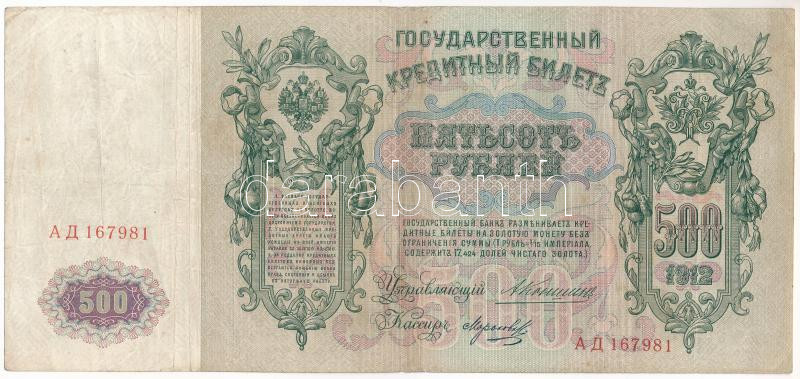 Beschreibung: Orosz Birodalom 1909-1912. (1912) 500R Szign.: Konshin T:F