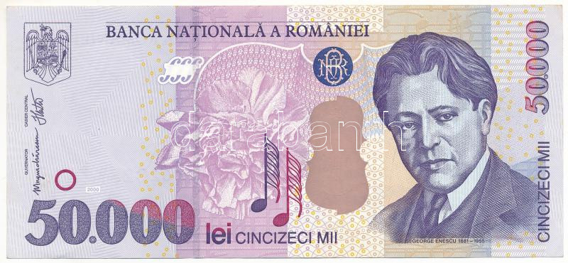 Romania 2000. 50.000 Lei C:AU https://www.darabanth.com/de/451-Fernauktion/451.0/Numismatik/Weltweit-Banknoten~1500014/Romania-2000-50000L-TAU-Romania-2000-50000-Lei-CAU~II2995614