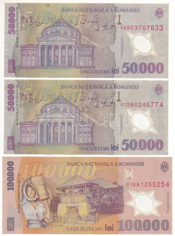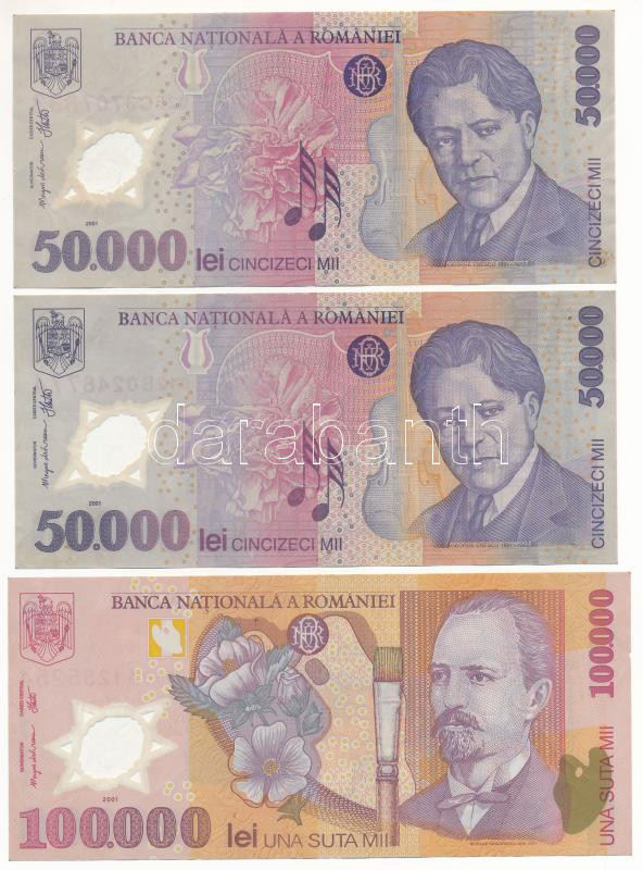 Beschreibung: Románia 2001. 50.000L (2x) + 100.000L T:F Romania 2000. 50.000L (2x) + 100.000L C:F