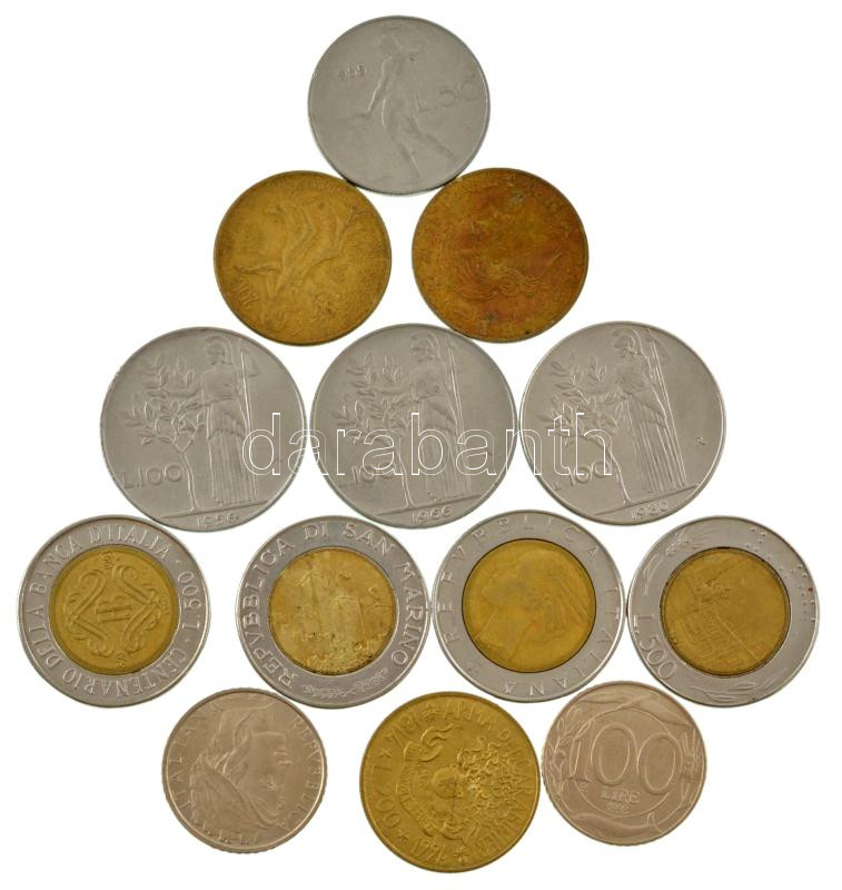 13db-os olasz érmetétel, közte egy San Marinoi érmével T:AU-VF 13pcs of mixed italian coin lot with one coin from San Marino C:AU-VF