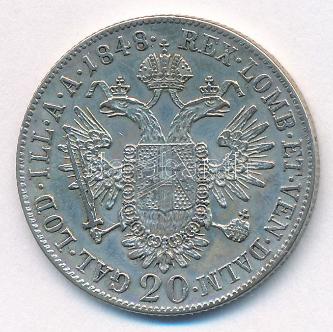 Ausztria 1848A 20kr Ag "I. Ferdinánd" T:VF patina Austria 18... https://www.darabanth.com/de/451-Fernauktion/451.0/Numismatik/Weltweit-Munzen~1500015/Ausztria-1848A-20kr-Ag-I-Ferdinand-TVF-patina-Austria-1848A-20-Kreuzer-Ag-Ferdinand-I-CVF-pa~II2996894