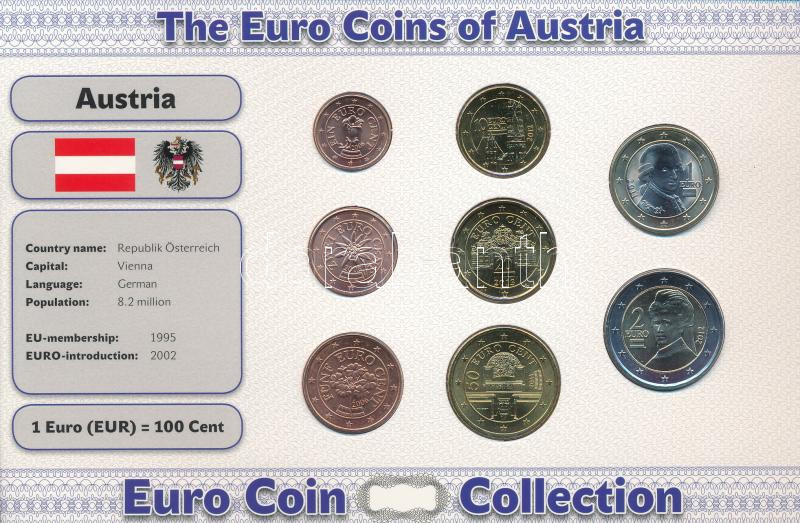 Ausztria 2006-2012. 1c-2E (8xklf) forgalmi összeállítás "The Euro Coins of Austria" karton díszlapon T:AU Austria 2006-2012. 1 Cent - 2 Euro (8xdiff) coin set in "The Euro Coins of Austria" cardboard display sheet C:AU