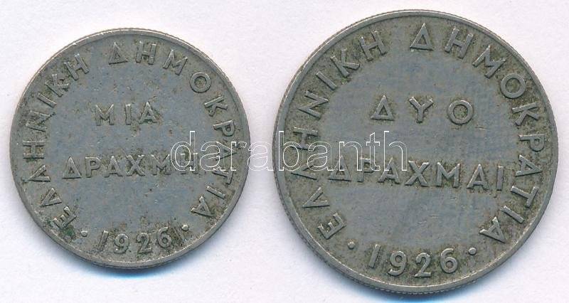 Görögország 1926. 1D Cu-Ni + 2D Cu-Ni T:XF,VF Greece 1926. 1 Drachme Cu-Ni + 2 Drachmai CU-Ni C:XF,VF