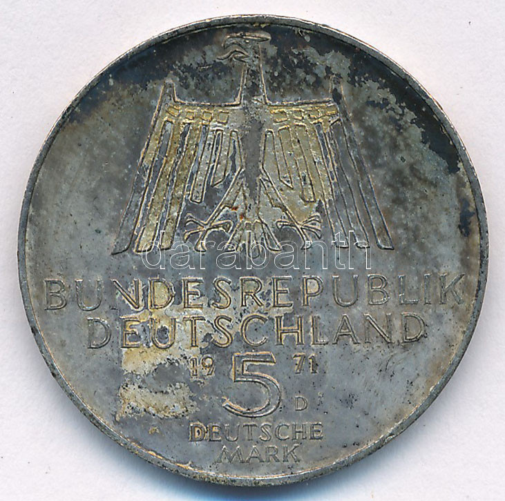 NSZK 1971D 5M Ag "Albrecht Dürer születésének 500. évfordulója" T:AU,XF patina FRG 1971D 5 Mark Ag "500th Anniversary - Birth of Albrecht Dürer" C:AU,XF patina Krause KM#129