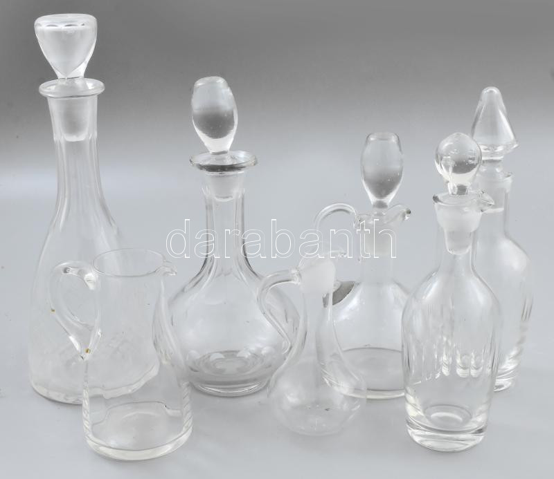 Beschreibung: Parádsasvár és környéke, 20. sz, italos üvegek és kiöntő, közte antik hutaüvegek, néhol kopással, sérüléssel